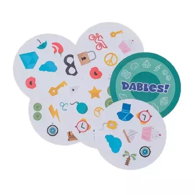 Dables! es un juego de agilidad visual y rapidez mental que no vas a querer soltar. Cada carta tiene varias imágenes, pero solo una imagen coincide entre cualquier par de cartas. ¿Podés encontrarla antes que los demás?