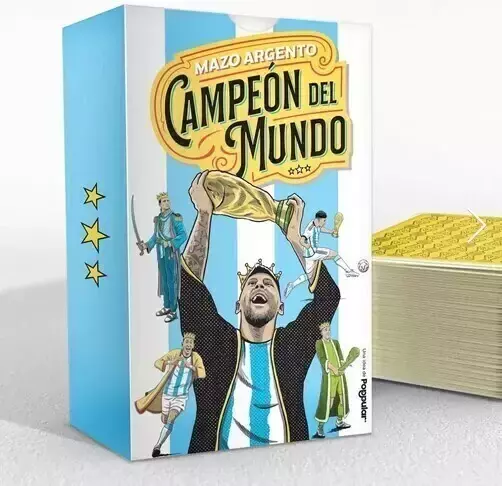 Las clásicas cartas españolas ahora tienen más aguante que nunca. En Mazo Argento Campeón del Mundo, cada carta está ilustrada con momentos icónicos del Mundial, los jugadores, el cuerpo técnico y los memes que nos hicieron reír (y llorar) en el camino a la gloria. Un mazo 100% argento, hecho con el corazón, la pasión y la calidad que se merece el campeón del mundo.