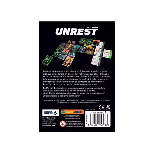 En Unrest, dos jugadores se enfrentan en un duelo asimétrico por el control de cinco distritos en una ciudad al borde de la revolución. Uno encarna a la Rebelión, decidida a liberar los barrios. El otro representa al Imperio, que hará todo lo posible por mantener su dominio. Cada decisión cuenta. Cada carta puede inclinar la balanza.